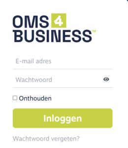 Inloggen in OMS4Business doe je door op de inlogpagina je gebruikersnaam en wachtwoord in te vullen. Deze heb je ontvangen van de beheerder van OMS4Business van de organisatie (deze persoon is Administrator). Indien je je wachtwoord niet meer weet kun op de link wachtwoord vergeten drukken.