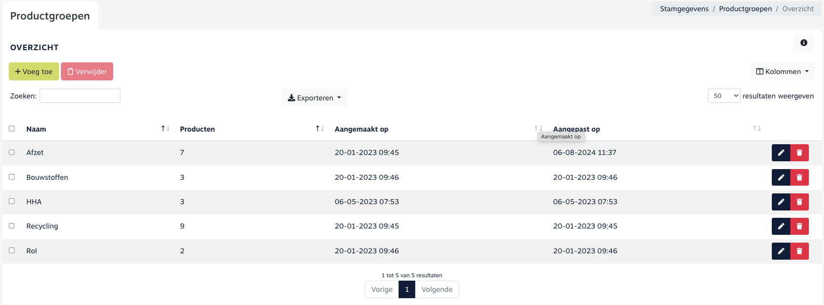 Met productgroepen kun je producten (en orders) groeperen. Dit kun je later gebruiken om te filteren en rapporteren.