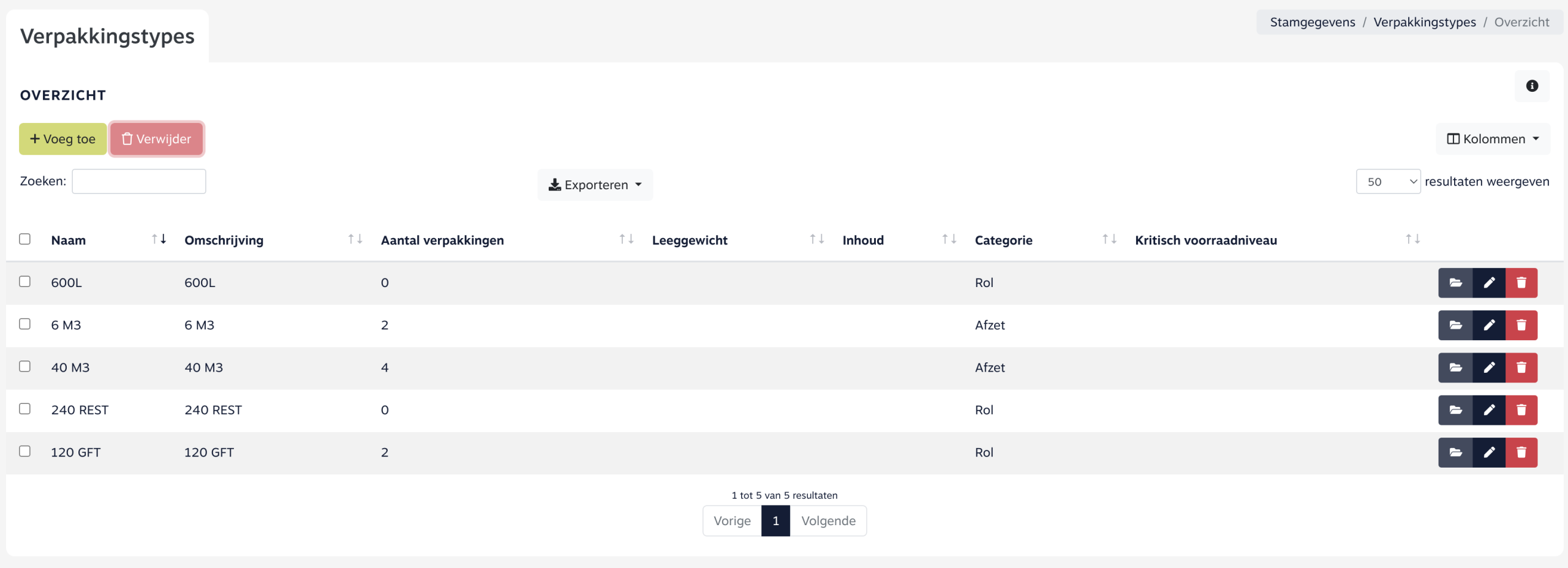 Via Stamgegevens/Producten/Vertpakkingtypes kun je deze zelf aanmaken en bewerken.