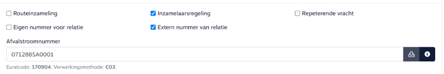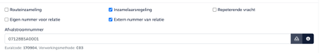 Met bovenstaand Afvalstroomnummer kan elke order voor het inzamelen van Bouw en Sloopafval van verschillende locaties van herkomst gemaakt worden. Let wel: Indien de Euralcode of Verwerkingsmethode op de order anders is dan in het stamgegeven, moet er een nieuw afvalstroomnummer gemaakt worden.