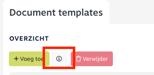 Klik op het “i”-icoontje (tussen de knoppen Voeg toe en Verwijder). - Het scherm Document Template Variabelen wordt geopend.
