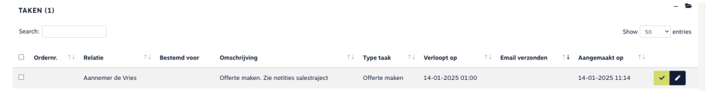 - Hij of zij kan de taak evt. nog bewerken (potloodje) en voltooien zodra uitgevoerd (groene vinkje).