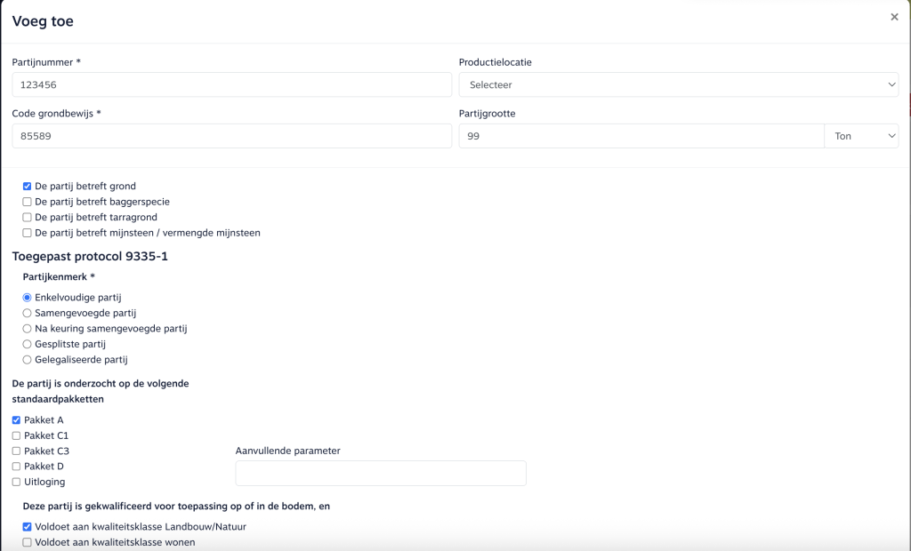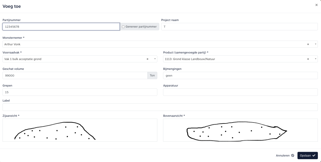 Voor het aanmaken van voorraadvakken, gebruikt u deze handleiding. Let er hierbij in het bijzonder op om voor grondbank voorraadvakken het ‘Type’ goed in te stellen: Grondbank (9335-1) of Grondbank (9335-4). Dit is essentieel omdat anders niet de juiste documenten beschikbaar zullen zijn en eveneens de handelingen rond keuringen etc. niet kunnen worden uitgevoerd. Hierbij hanteert u doorgaans 2 soorten voorraadvakken: