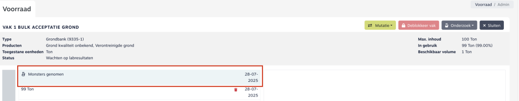 Zodra u opslaat, krijgt het vak de status ‘Monsters genomen’.