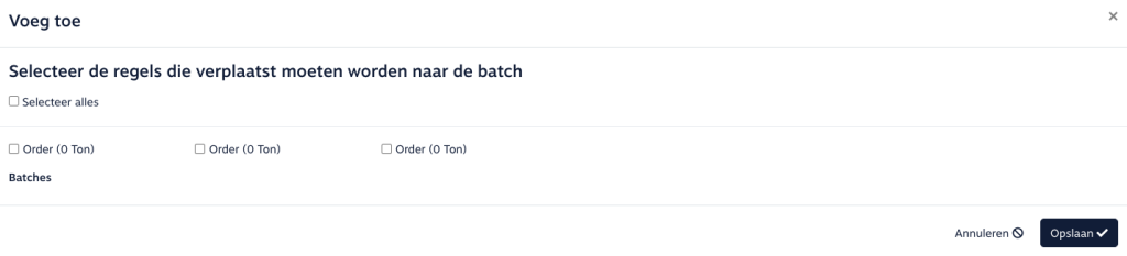 2: Bevestig welke orders er mee moeten worden genomen in de batch.