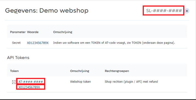 Ga in uw PAY.nl-omgeving naar Instellingen → Verkooplocaties. Klik op de SL-code om de gegevens te openen. U ziet nu onderstaand scherm, waaruit u de benodigde informatie kunt overnemen: