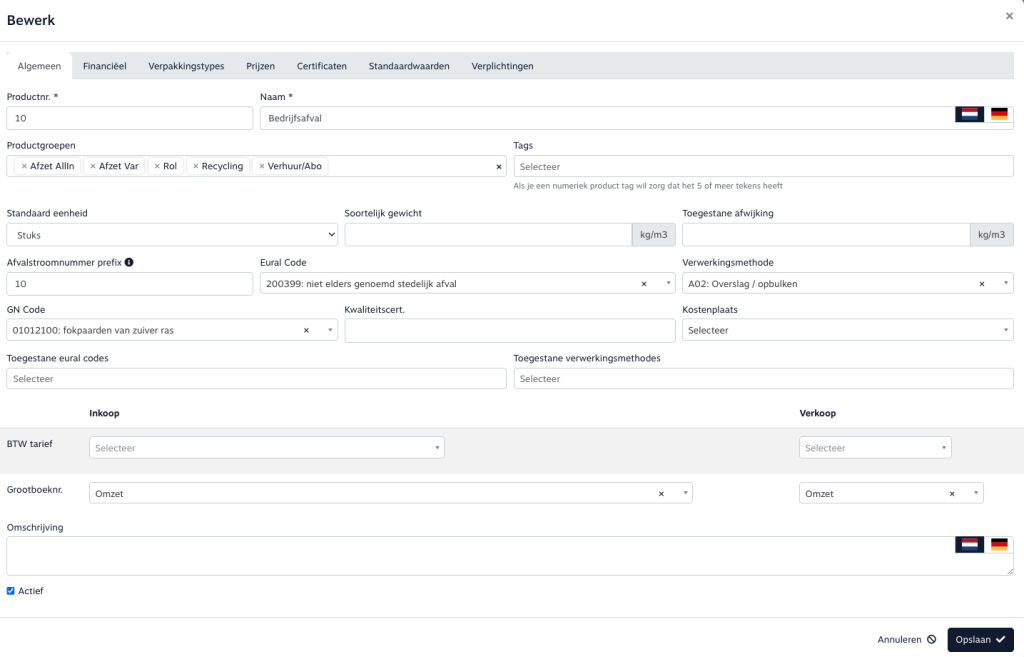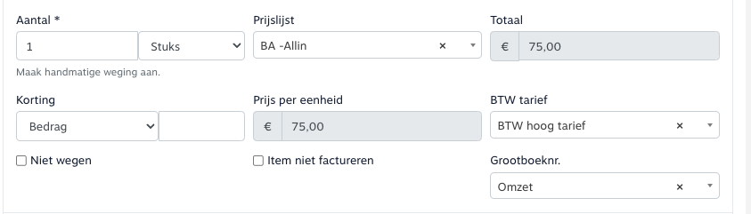 Daarnaast kunt u per product ook een grootboeknummer toewijzen. Dat betekent dat van elke order die gemaakt wordt de omzet van die order op het toegewezen grootboek zal worden geboekt. Dit overruled dus de eerste standaard waarde.