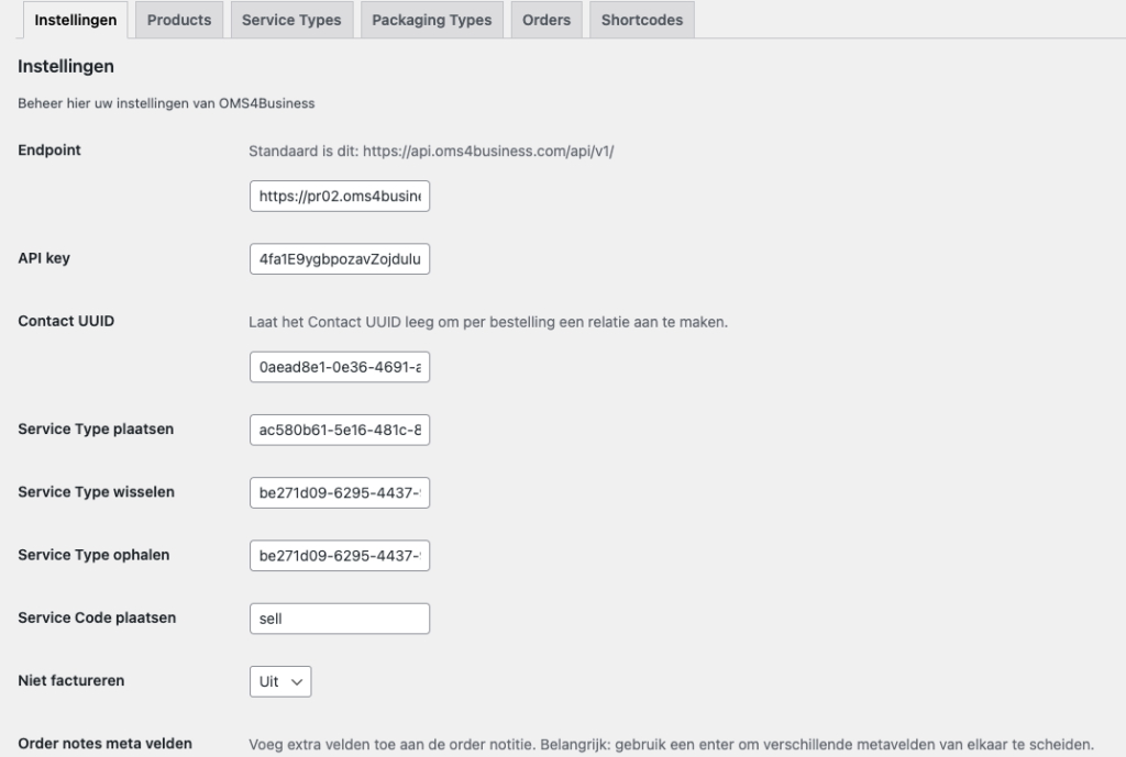 5. Bij de Relatie UUID voeren we de UUID in van de relatie waaraan de bestellingen gekoppeld worden. Dit is een relatie in OMS4Business (bijvoorbeeld Webshop klanten). Bij het aanmaken van de API key word de UUID aangemaakt.