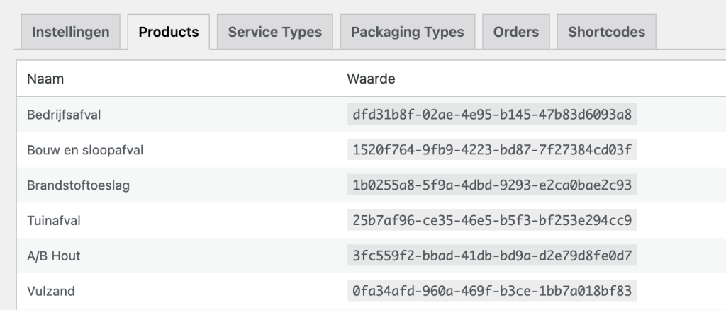 7. Kopieer en plak de betreffende waarden in de velden op de producten.