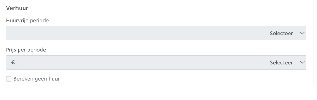 Het is mogelijk om uitzonderingen binnen de huurperiode aan te geven. Zie de onderstaande afbeelding. Het gaat dan bijvoorbeeld om de huur berekeningen op zon- en feestdagen.