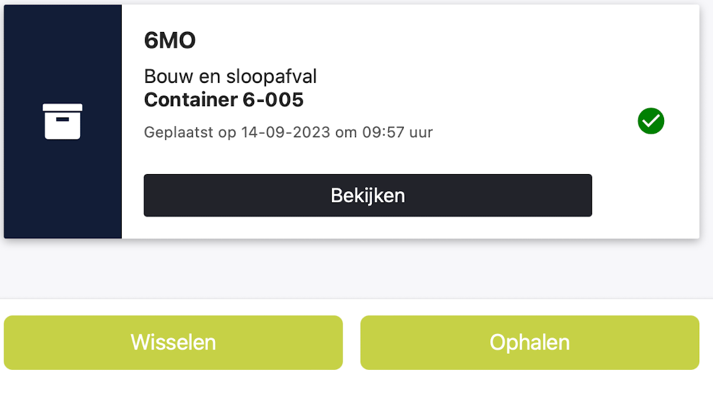 Door een verpakking te selecteren gaat de Relatie verder in het bestel proces. Staan er op een adres meerdere containers dan kan men daar de betreffende verpakking selecteren en een “wissel” of “ophaal” order maken