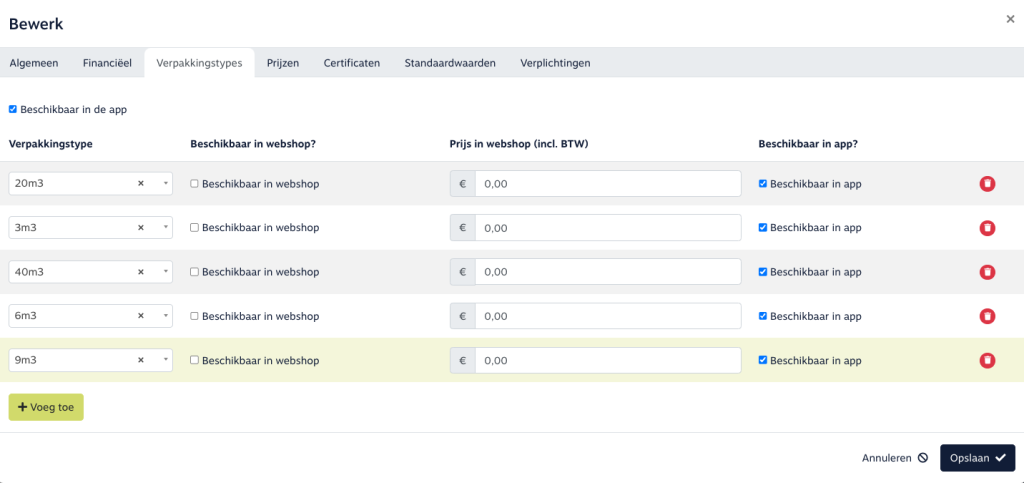 Bij de stamgegevens van de producten moet aangegeven worden dat deze gebruikt kunnen worden in de app.
