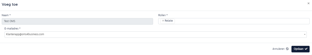 - Klik daarna onder het kopje Account op de ” Voeg toe” knop en kies bij rollen voor de optie – Relatie.
