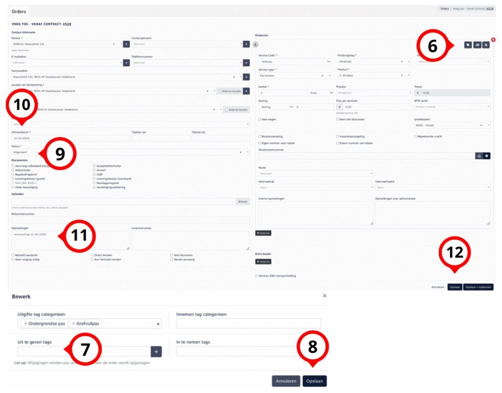 - Pas de uitvoerdatum aan naar de verstuurdatum van de afvalpas
