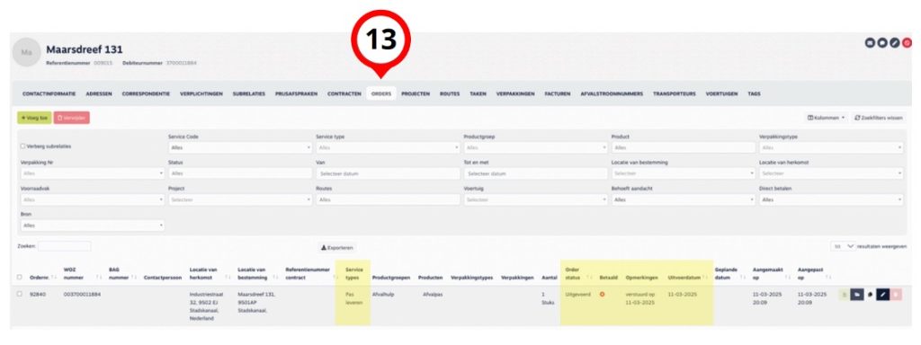 13. Controleer of de order is toegevoegd onder ‘Orders’ in de relatiekaart