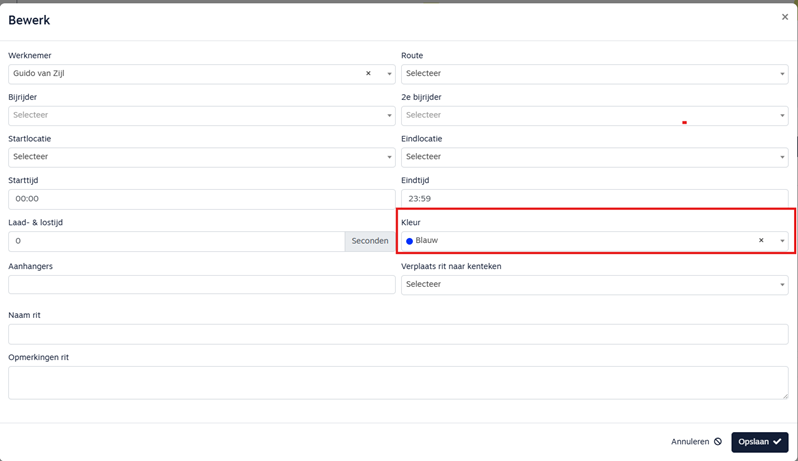 In het volgende scherm kunt u de kleur van de route lijn aanpassen: