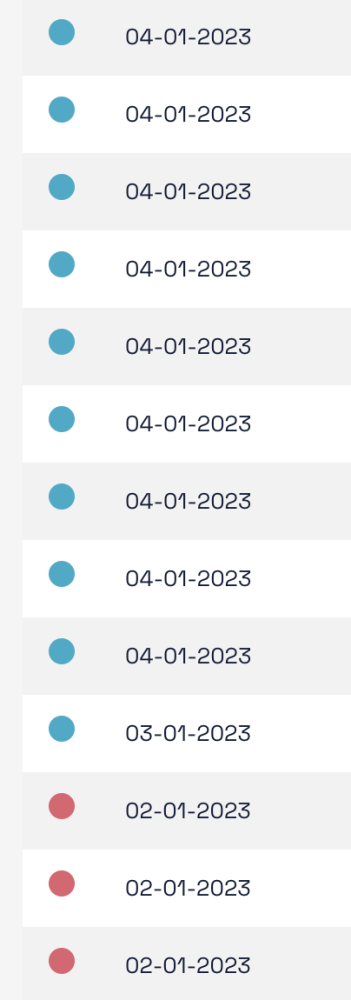 Orders die op de geselecteerde dag of in toekomst moeten worden uitgevoerd hebben een blauw bolletje. De orders die ” te laat” zijn hebben een rood bolletje.